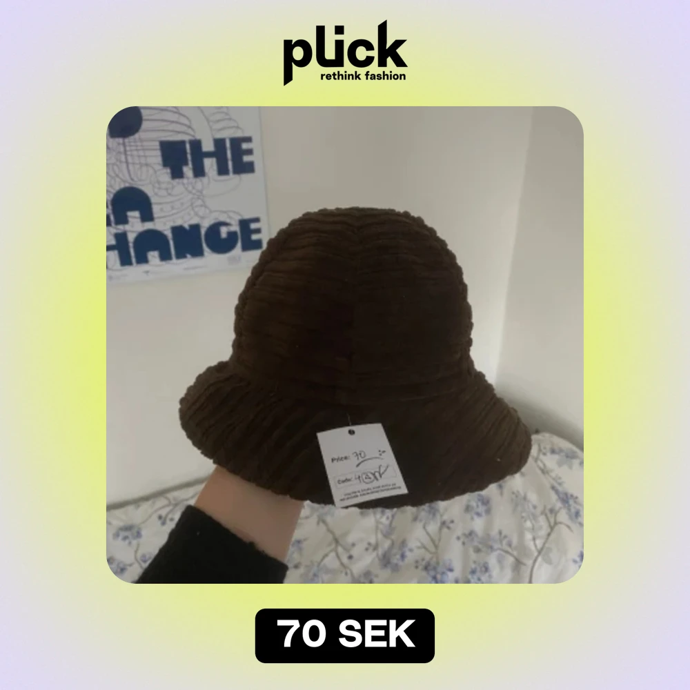 Brun hatt i manchestertyg ish, väldigt liten i storleken, köpt på humana och aldrig använd så säljer vidare den med samma pris (som syns i första bilden på prislappen som sitter kvar)✨Verkar ursprungligen vara något italienskt märke