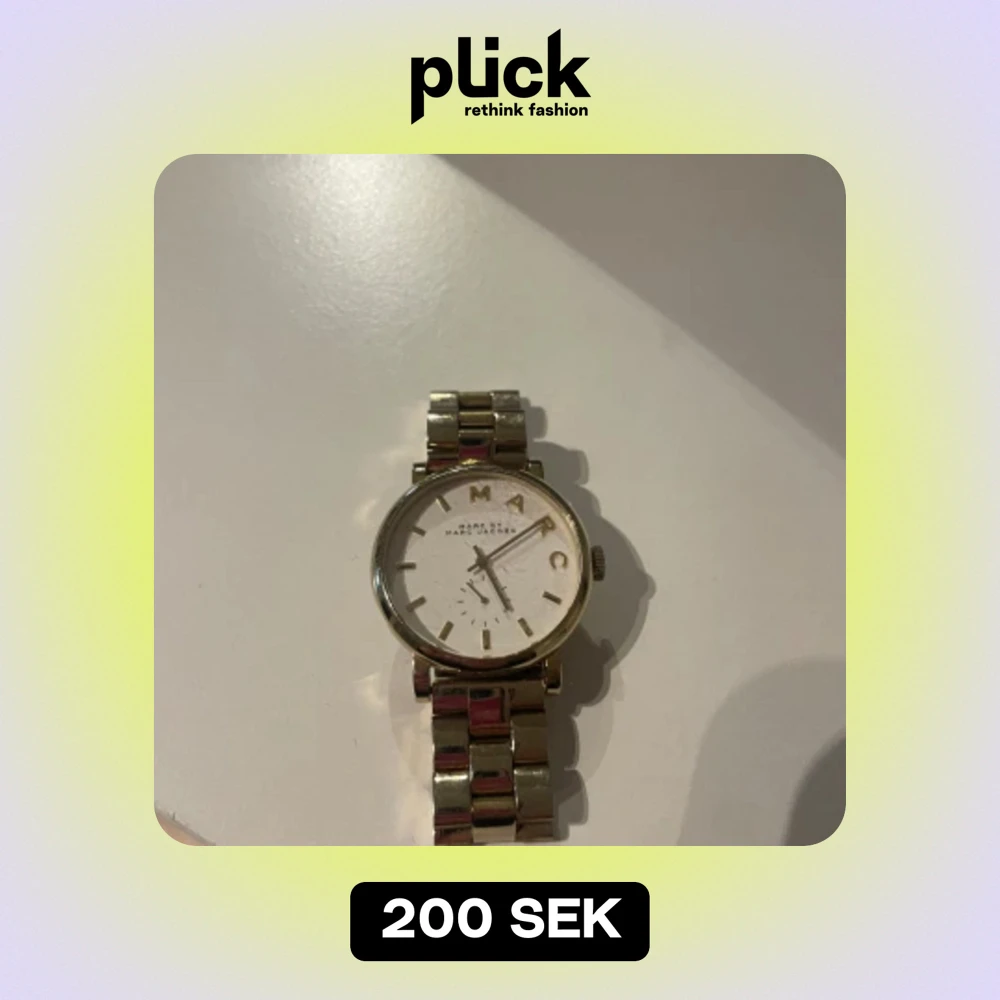 Klocka i guld från Marc Jacobs. Klockan har några repor på uret och saknar fungerande batteri. Armbandet går att ställa in. I övrigt bra skick!