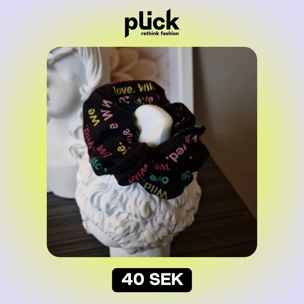 Officiell marcus & martinus merch. Svart schrunchie med texten "Wild love"