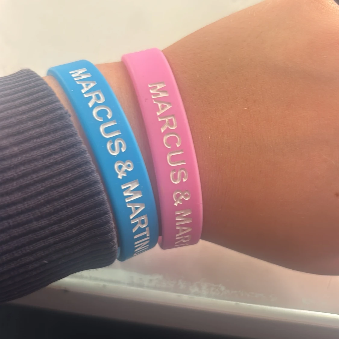 Två snygga silikonarmband i blått och rosa med texten 'MARCUS & MARTINUS' i vitt. Perfekta för fans som vill visa sitt stöd för sina idoler. Armbanden är mjuka och flexibla, lätta att bära hela dagen. !!pris kan diskuteras!!