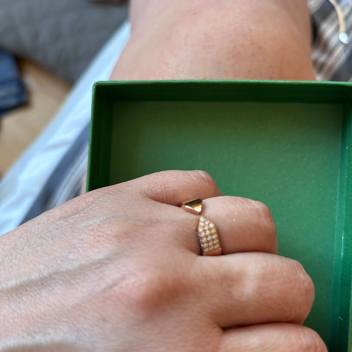 Elegant guldfärgad (rosé gold)ring från Edblad med en glittrig yta. Perfekt för att lägga till en touch av glamour till din stil