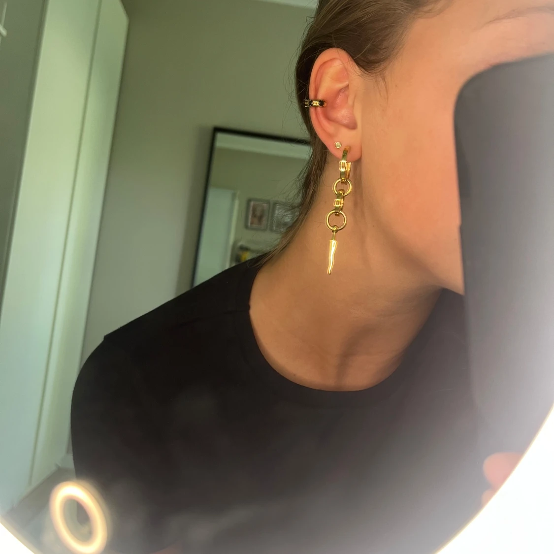 Cool ear cuff i guld med svarta sten detaljer från Maria Nilsdotter. Använd fåtal gånger. Fin detalj som ger ett cool intryck.