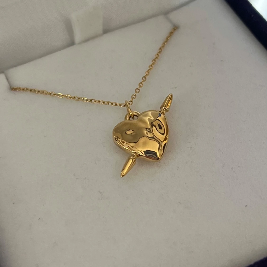 Aldrig använd, 18K guldpläterad och tillverkad av rostfritt stål. Kedjans längd 40+5 cm och nickelfri. Om du har fler frågor, tveka inte att höra av dig 🤗