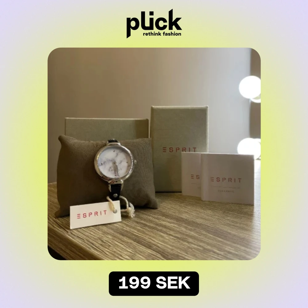 Esprit klocka i läder med marmor stil. Köpt för 2 år sedan men har aldrig använts. Ord. pris 1098kr.