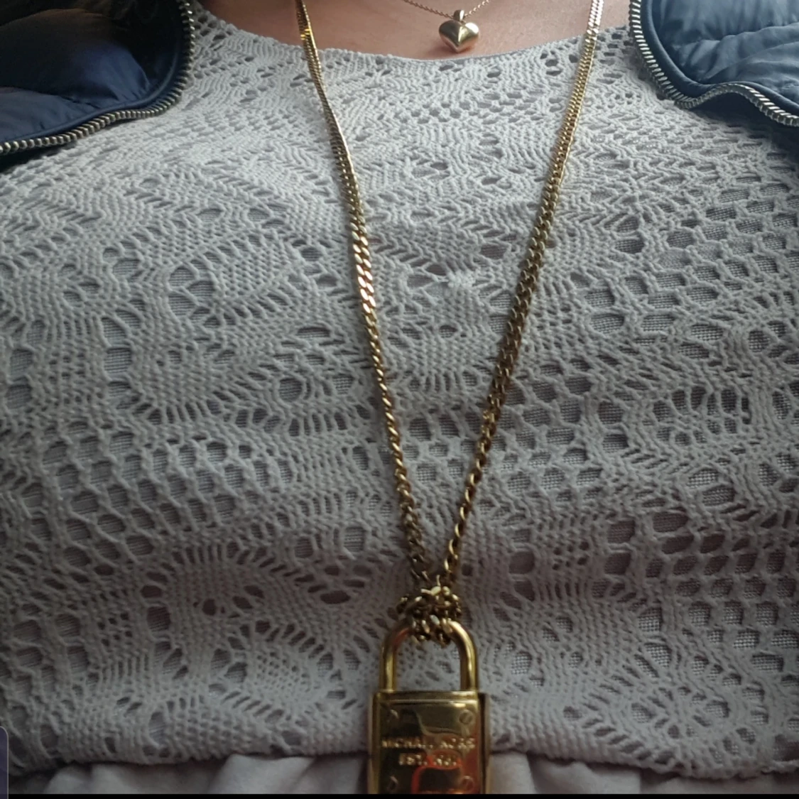 Michel kors halsband (ÅKTA) Tyvärr inget kvitto för jag trodde att jag skulle behålla den. Långt halsband som ni ser på bilden. Nypris 1600kr Priset är ink.