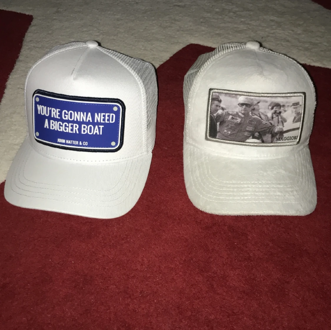 John hatten kepsen är oanvänd, så den är i topp form och Maggiore kepsen är lite mer använd men fortfarande i bra skick!!🍾