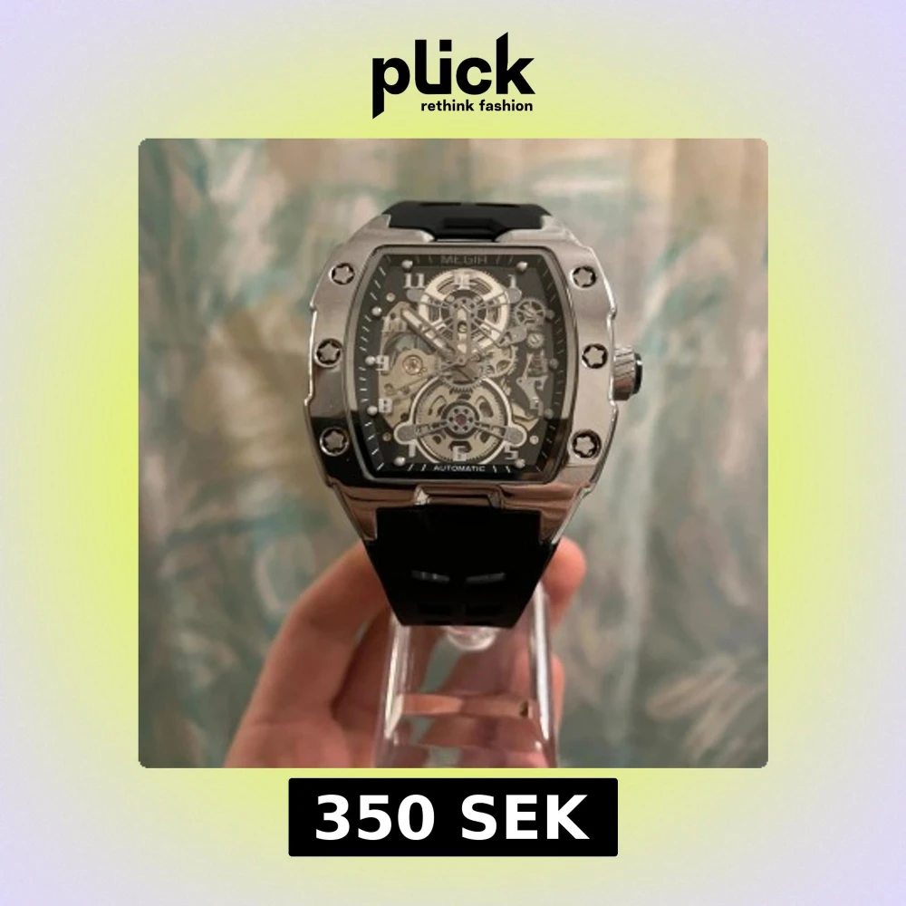 Säljer en snygg automatisk klocka från Megir med genomskinlig urtavla där du ser mekaniken. Klockan har en robust silverfärgad boett, svarta detaljer och svart armband i syntetmaterial. Rektangulär form med coola skruvdetaljer och tydliga siffror. ✅Helt Ny✨. ✅Frakt inom 24 timmar📦. ✅Kommer med Låda 🗃️.