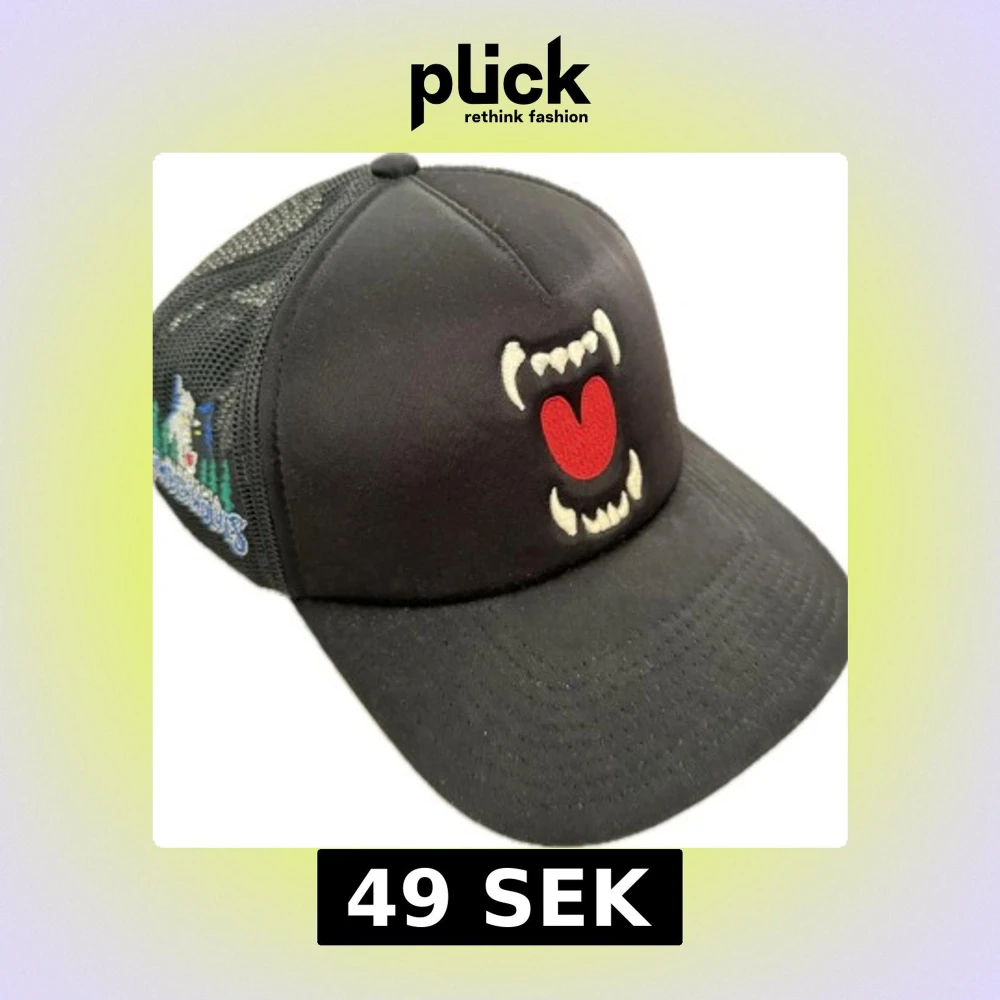 Svart truckerkeps från Mitchell & Ness med broderad Minnesota Timberwolves-logga på sidan och vampyrtänder med röd tunga framtill. Kepsen har mesh på sidorna och justerbar baksida för skön passform. Perfekt för basketfans som vill sticka ut. Finns i Göteborg, skickas ej.