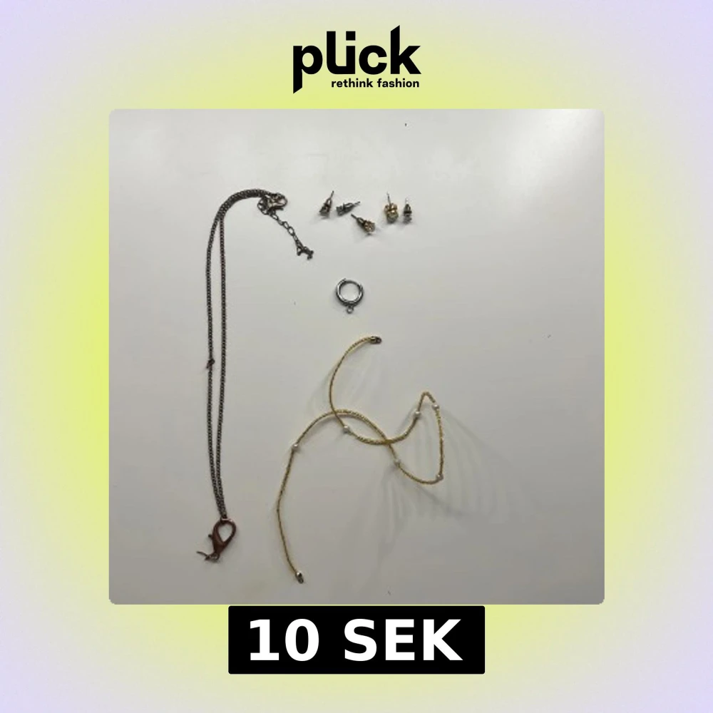 Säljer ett kit med smycken: ett brunt halsband, ett tunt guldigt halsband med små pärlor som ej går att knäppa , en enkelt silverfärgat öronhängen och fem olika örhängen i guld och silver. Perfekt för dig som gillar att mixa och matcha smycken.