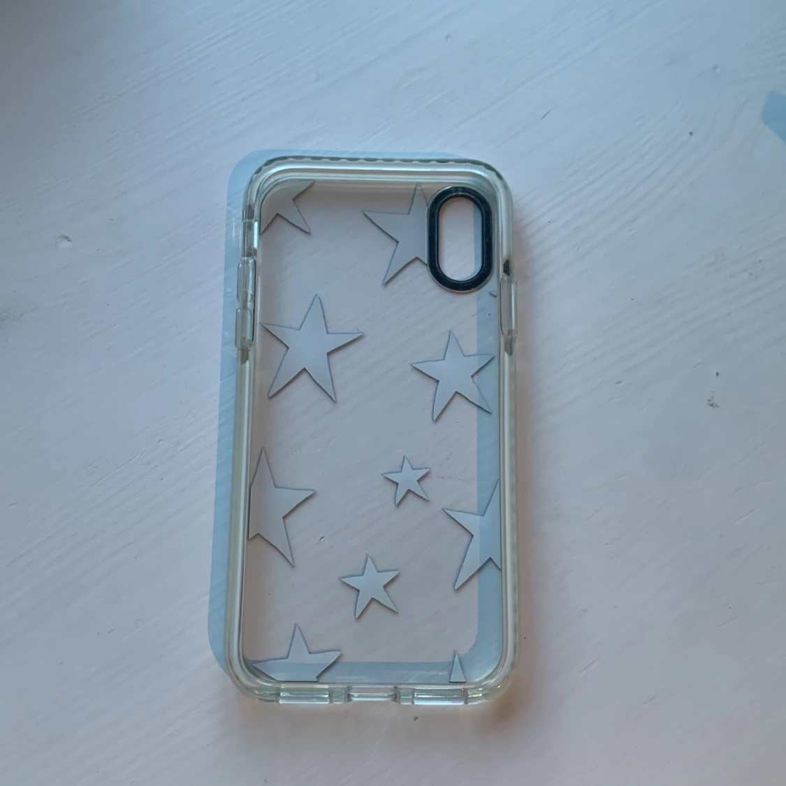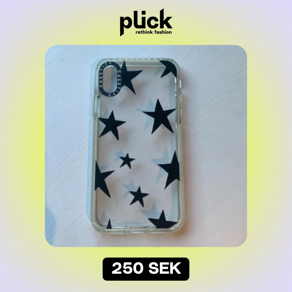 Genomskinligt mobilskal med svarta stjĂ€rnor!âïžI gott skick!