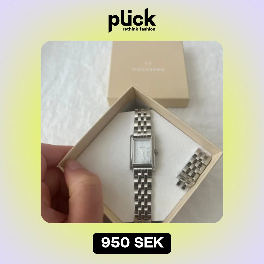 Klocka från mockberg i silver. Klockan har använts sparsamt. Inga repor på urtavla. Minimal slitning på länk. Extra länkar medföljer och box. Mer info om klockan här😊 https://mockberg.com/products/timeless-silver?_gl=1*16pv4i3*_up*MQ..&gclid=CjwKCAj