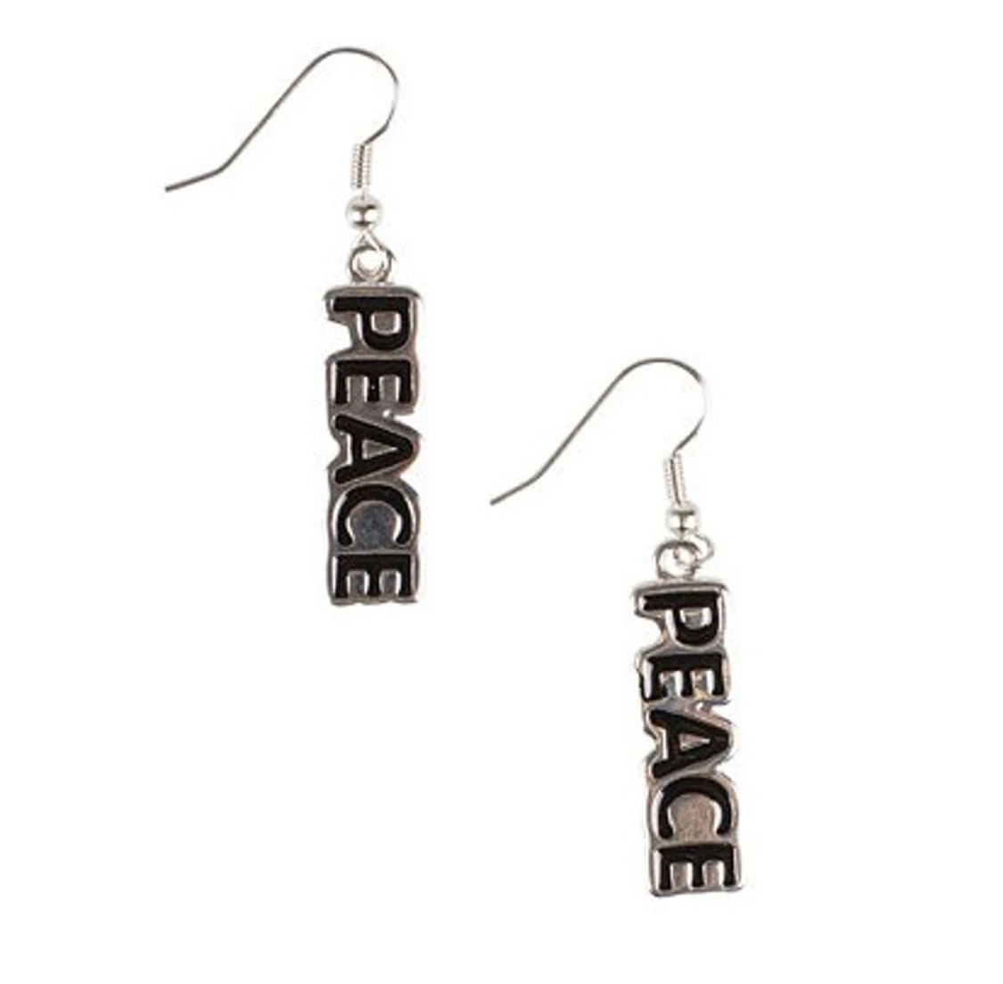 NYA oanvända örhängen med fint budskap: PEACE. Svart/silvrigt