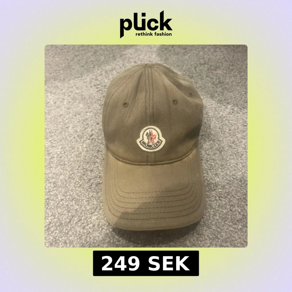 Snygg olivgrön keps från Moncler med klassisk böjd skärm och broderad logotyp framtill. Justerbar rem baktill med diskret röd och vit detalj. Tillverkad i slitstark bomull, perfekt för dig som gillar stilrena accessoarer. Den är solblekt som man ser på bilden! Men utöver det är det inget slitage eller liknande
