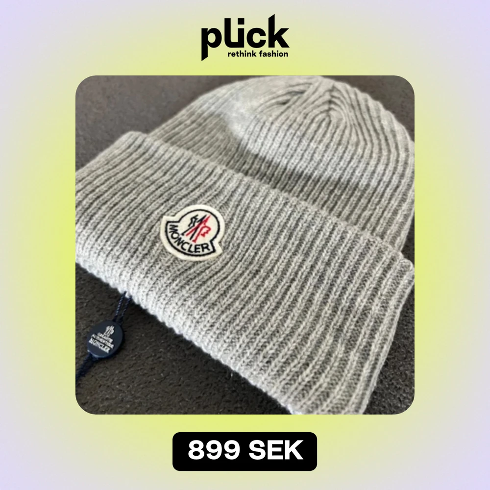 Säljer en snygg och varm grå ribbad mössa från Moncler. Den är perfekt för kalla dagar och har en klassisk design med Monclers logga framtill. Mössan är i nyskick och kommer med originaltaggar.