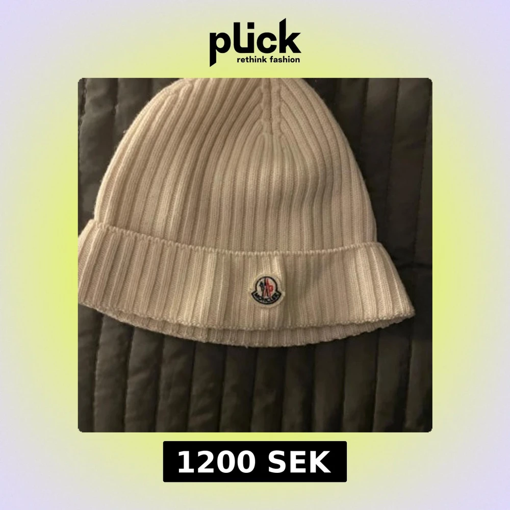 Säljer en stilren vit ribbad mössa från Moncler med deras ikoniska logga framtill. Perfekt för att hålla värmen med stil under kyliga dagar passar även till våren. Äktehets bevis finns. Tryck inte på köp nu !! Kom med bud