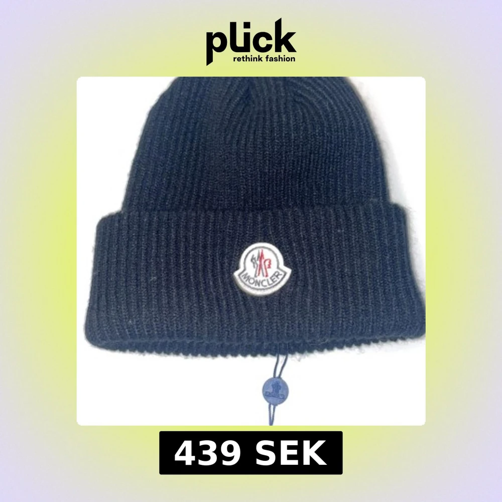 Snygg svart ribbad mössa från Moncler med det klassiska logotypmärket framtill. Perfekt för kyliga dagar och ger en stilren look.