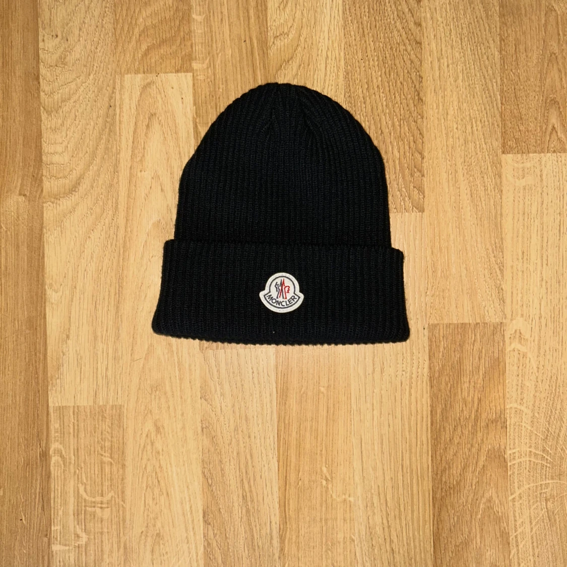 LÄGG BUD PRIS KAN SÄNKAS. Svart ribbstickad mössa från Moncler med klassisk uppvikt kant och broderad logotyp framtill. Tillverkad i mjuk ull som håller dig varm och snygg under kalla dagar. Perfekt accessoar för dig som vill ha en stilren och exklusiv look. 📍Ort: Borås 📦Skick helt ny ✅orginal pris 1200kr 🚚fraktas snabbt eller mötas upp i Borås