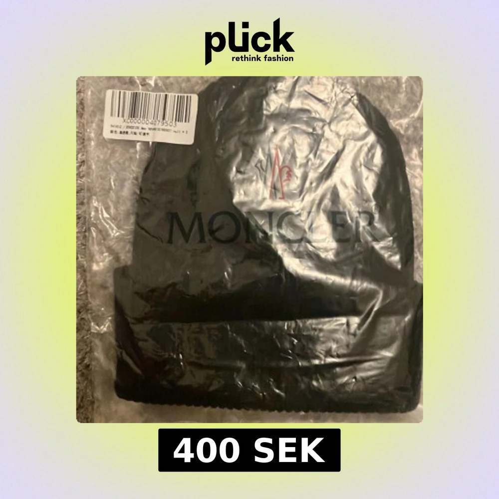 Snygg svart mössa från Moncler med klassisk design. Perfekt för att hålla värmen under kyliga dagar. Mössan har en diskret logga framtill. Köpte den begagnat så vet it om den är äkta.