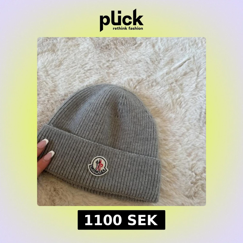 Snygg grå ribbad mössa från Moncler med broderad logga framtill. Perfekt för kyliga dagar och ger en stilren look. Passar både till vardags och mer uppklädda tillfällen.