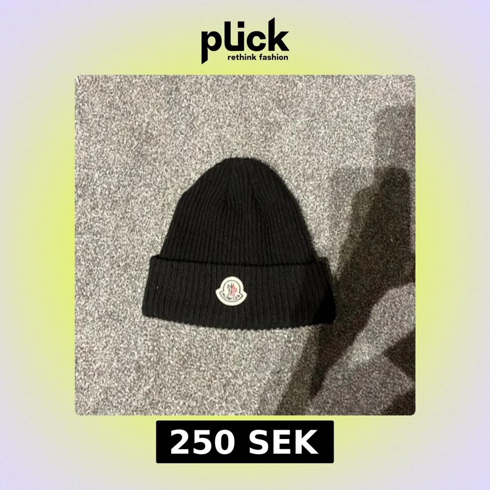 Svart ribbstickad mössa från Moncler med klassisk uppvikt kant och ikonisk Moncler-logga framtill. Snygg och enkel design som passar perfekt till kalla dagar. Materialet är mjukt och värmande, och mössan har en stilren look som funkar till alla outfits.