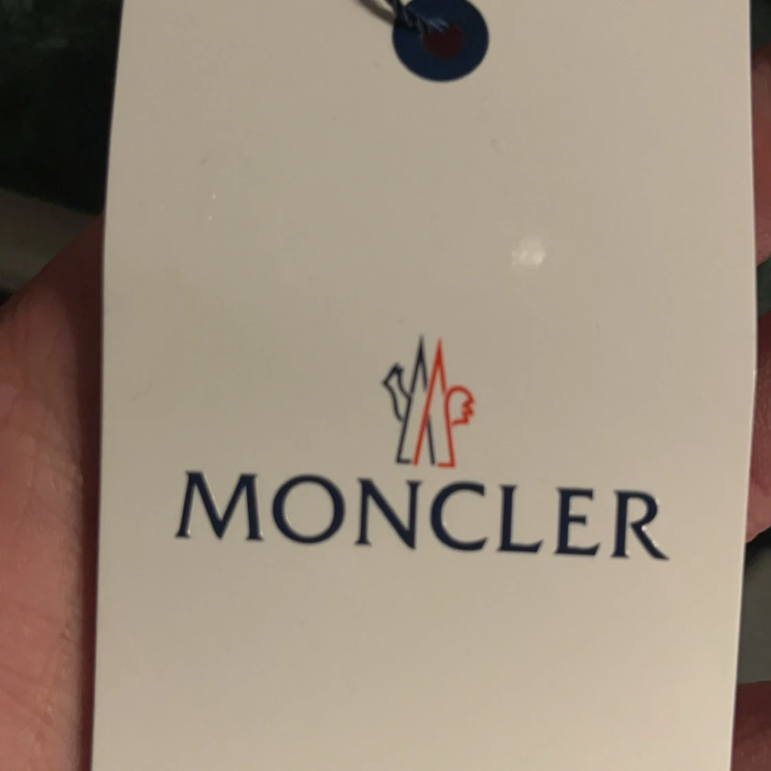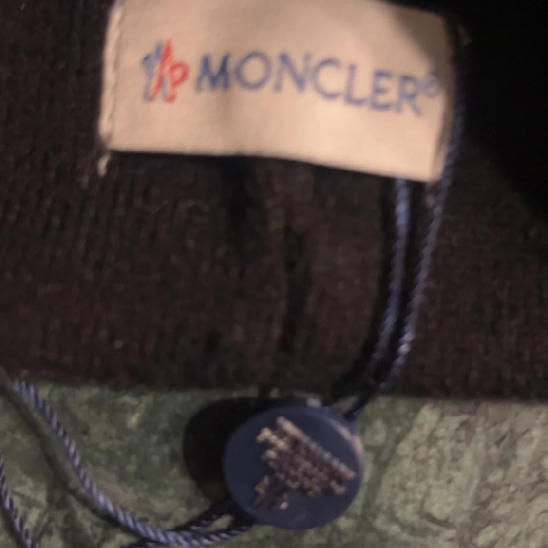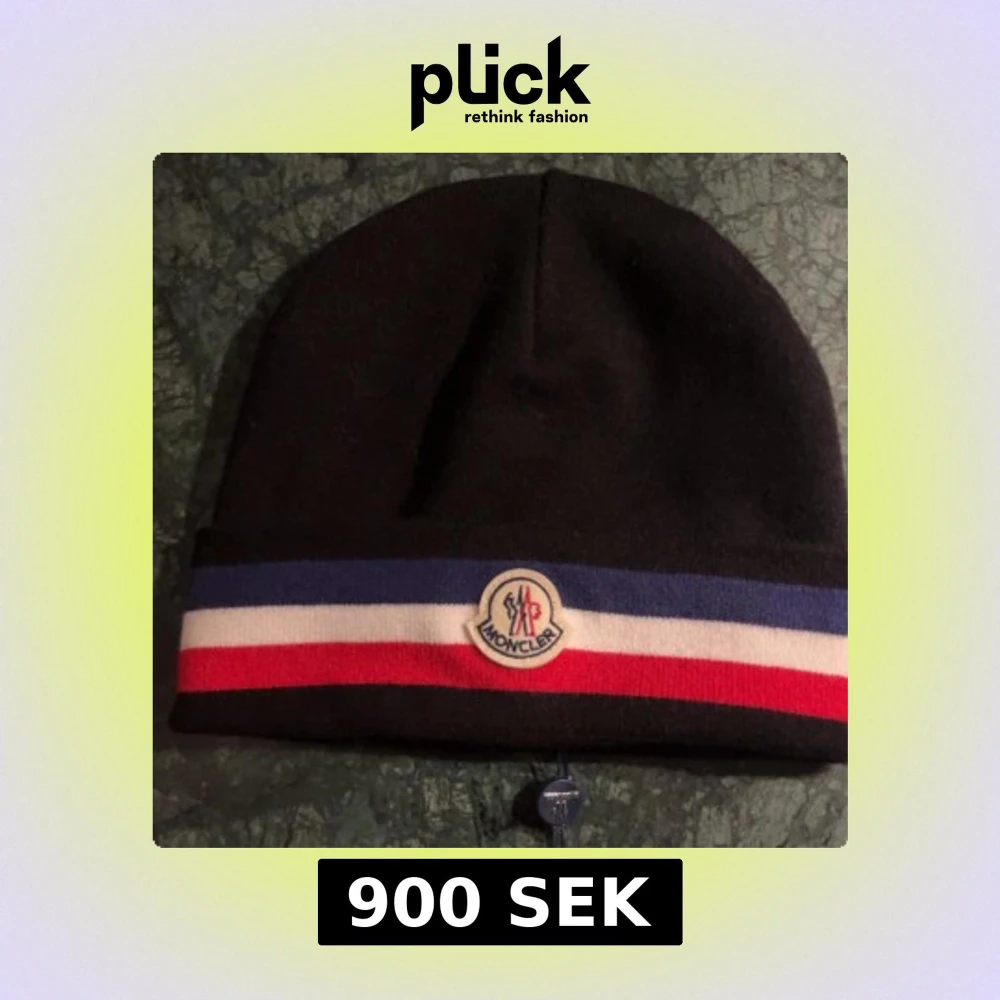 Snygg svart mössa från Moncler med röd, vit och blå randdetalj. Perfekt för att hålla värmen med stil. Märkeslogga framtill ger en exklusiv touch.