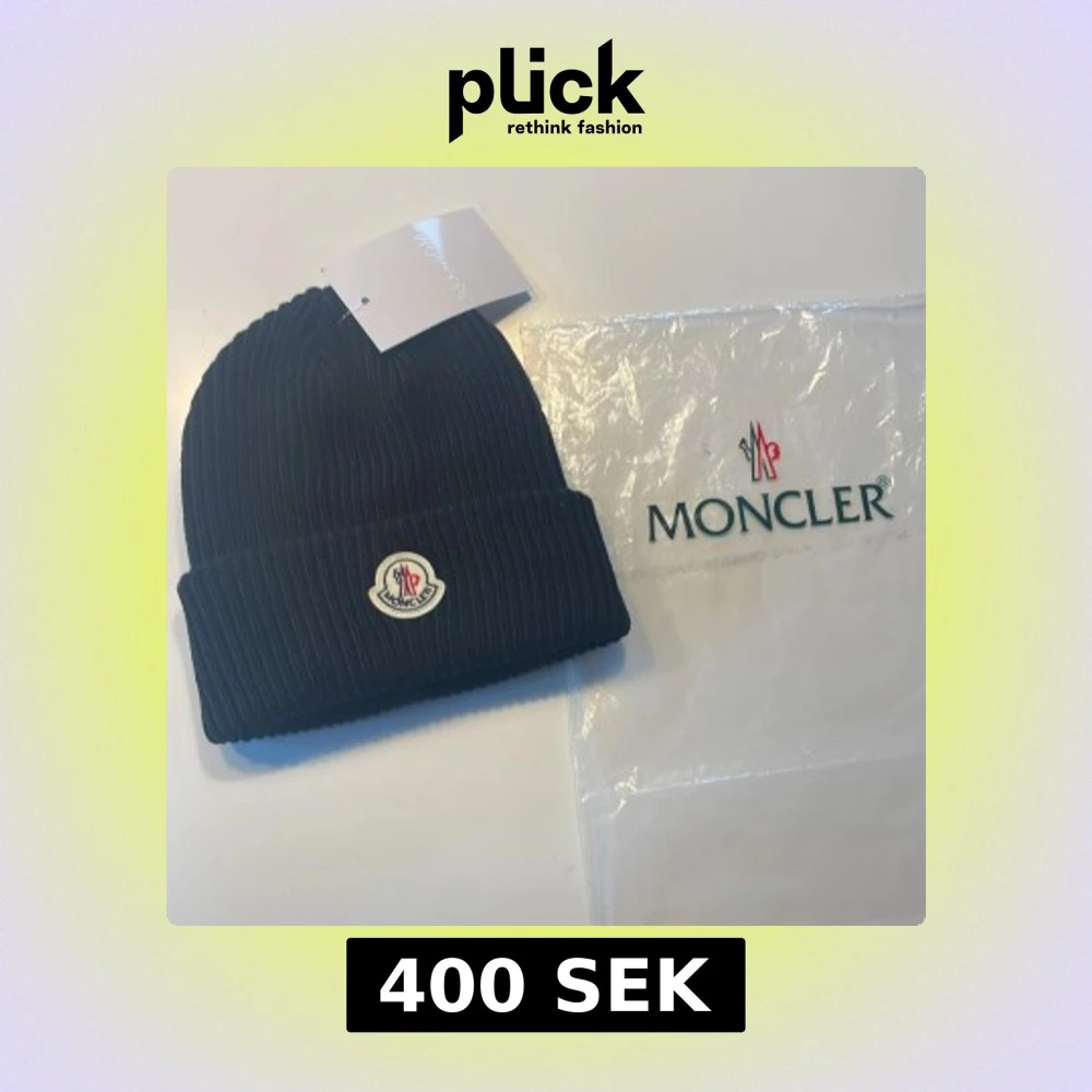 Snygg svart ribbad mössa från Moncler med broderad logotyp framtill. Perfekt för kyliga dagar och ger en stilren look. Priset kan diskuteras