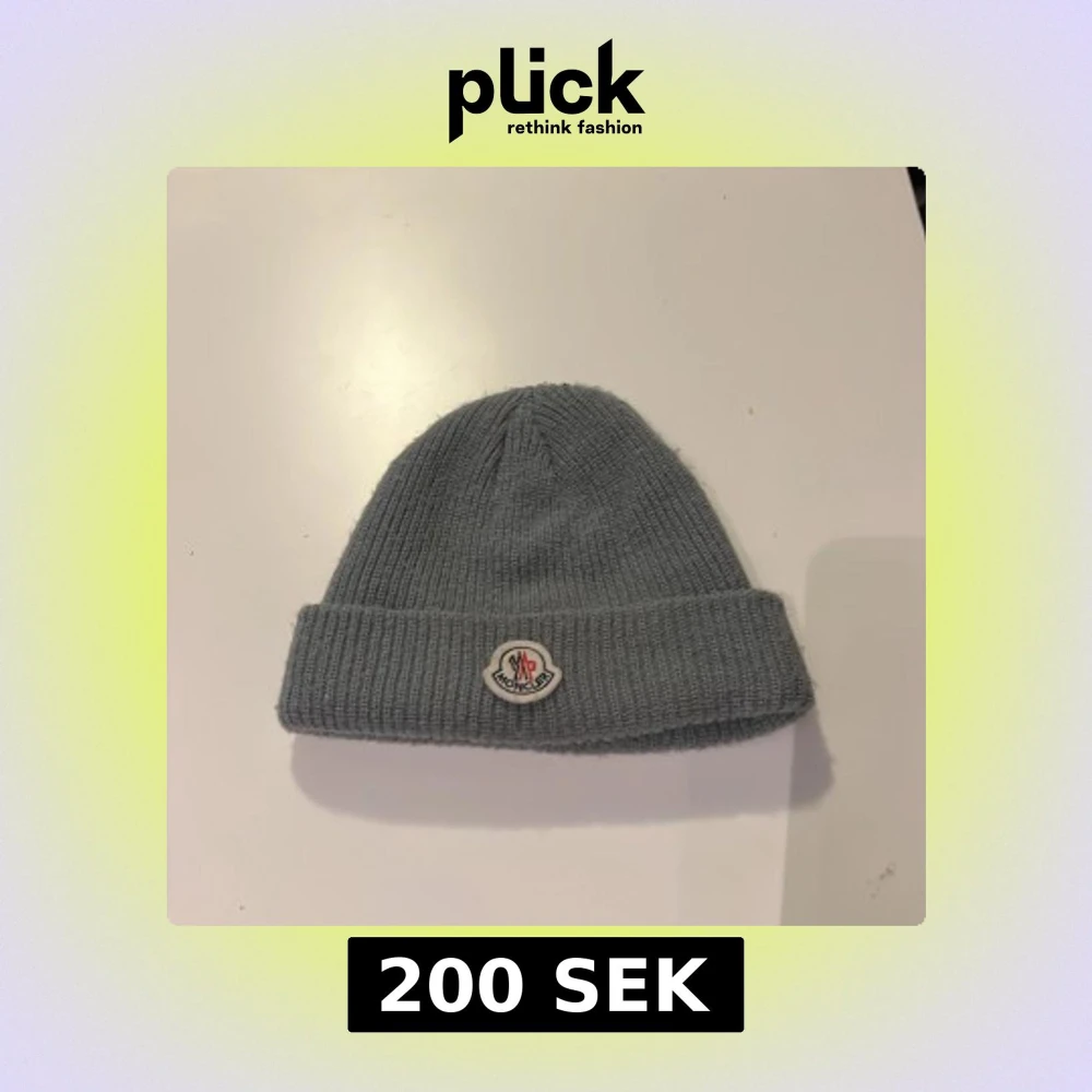 Snygg grå ribbstickad mössa från Moncler med klassisk uppvikt kant och broderad logotyp framtill. Mössan har en enkel, rundad form och är tillverkad i mjukt stickat material som håller dig varm. Perfekt för dig som gillar stilrena accessoarer med exklusiv känsla. Den har två små revor som inte syns så mycket men inget som påverkar funktionen.