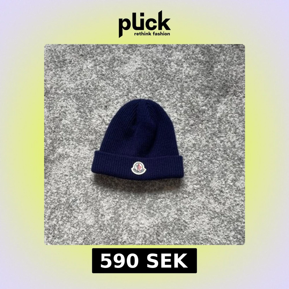 Snygg mörkblå ribbstickad mössa från Moncler med uppvikt kant och klassisk logotyp framtill. Perfekt för kalla dagar och ger en clean look till din outfit. Materialet är mjukt och värmande, och färgen är riktigt djup marinblå.