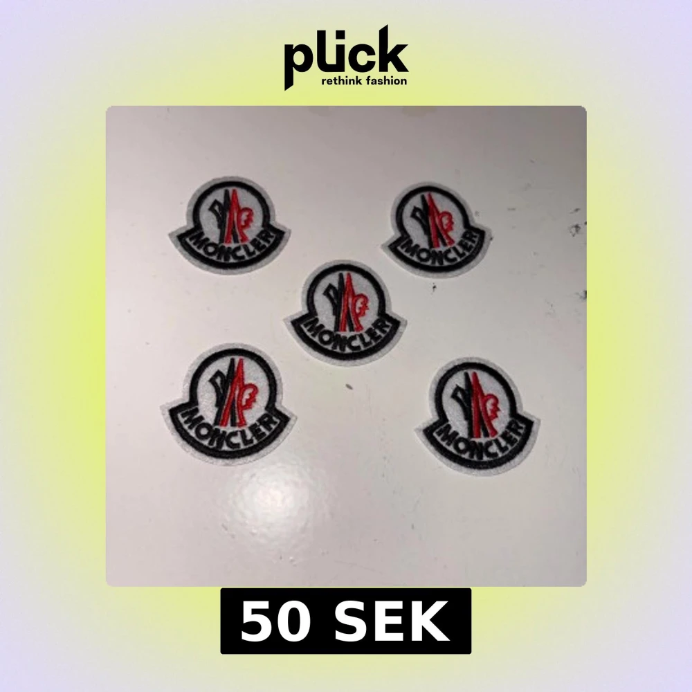 Säljer Moncler märken i vitt, svart och rött. Perfekta för att sätta på jackor eller andra plagg för en exklusiv look. Märkena har en tydlig och stilren design med Monclers ikoniska logotyp.