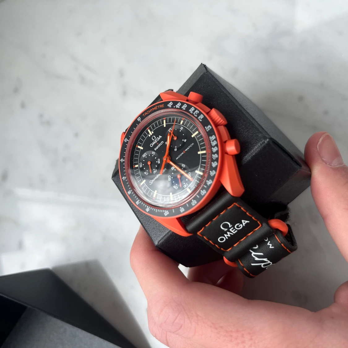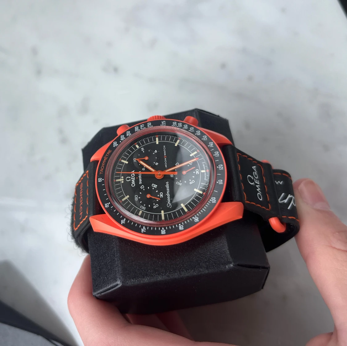Säljer min moonswatch mission to earth lava. Använd en gång.