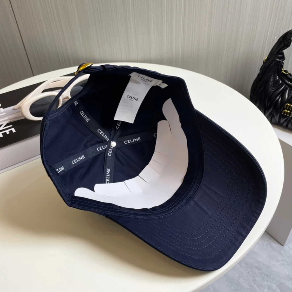 Snygg mörkblå keps från Celine med broderad vit logga framtill. Klassisk böjd skärm och justerbar rem baktill med gulddetalj. Tillverkad i bomull för en bekväm och stilren look. Perfekt accessoar för att lyfta din outfit.