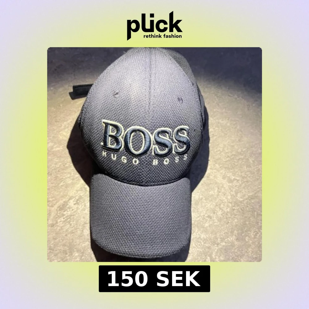 Snygg mörkblå keps från Hugo Boss med stor broderad logga framtill. Kepsen har justerbar rem baktill med metallspänne och insida i limegrönt och beige. Tillverkad i ett grovt vävt material som ger en sportig känsla.