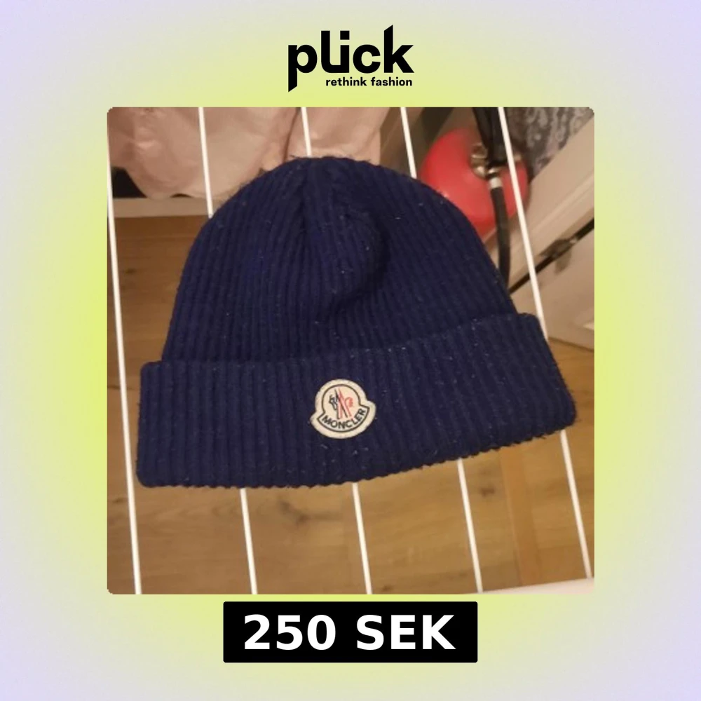 Snygg mörkblå mössa från Moncler med ribbad design och broderad logga framtill. Perfekt för kyliga dagar och ger en stilren look. Passar bra till både vardag och mer uppklädda tillfällen.