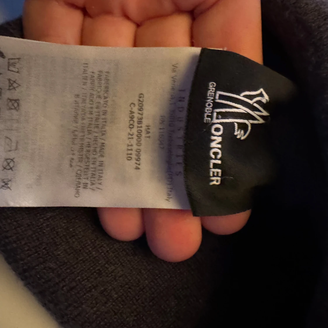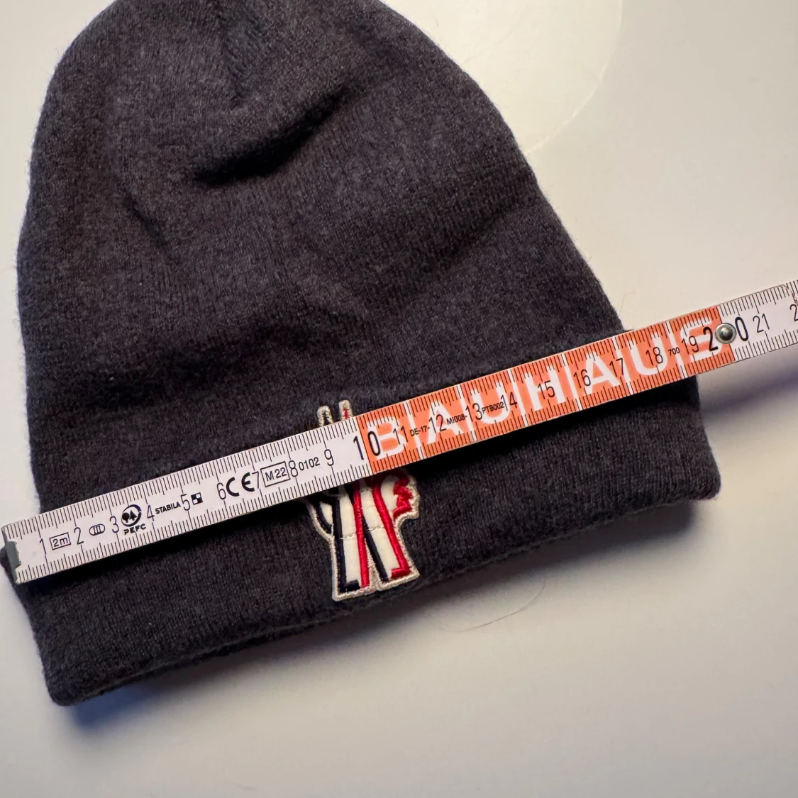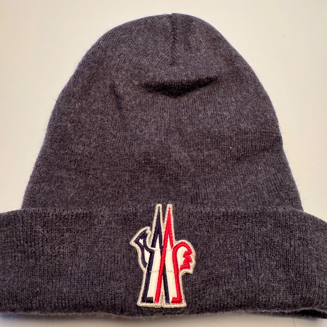 Snygg mörkgrå mössa från Moncler med broderad logga framtill i rött, vitt och blått. Tillverkad i mjuk ull som håller dig varm under kalla dagar. Klassisk uppvikt kant och stilren design som passar perfekt till vintern. Tophat / beanie