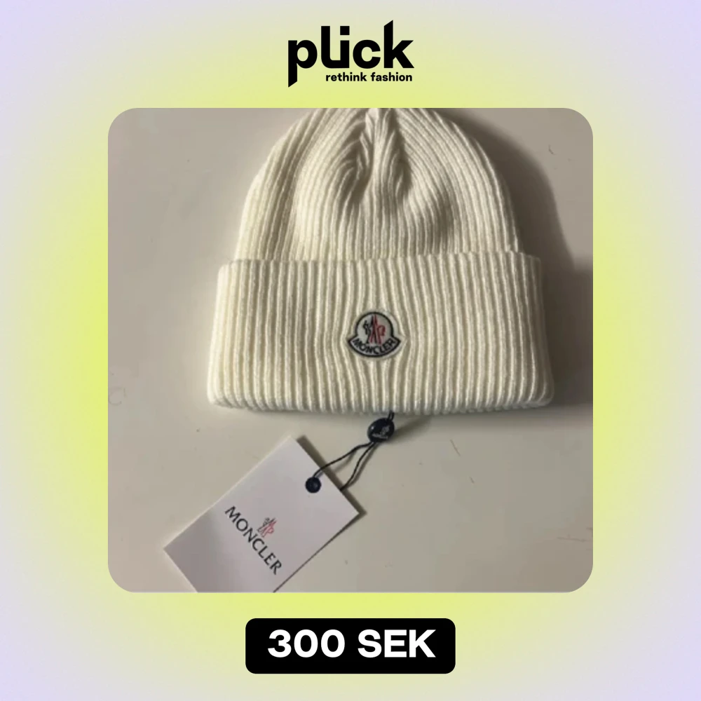 Det är en vit Monckler mössa med Scan inuti, Har aldrig använts och jag fick den i födelsedagspresent. Priset kan diskuteras