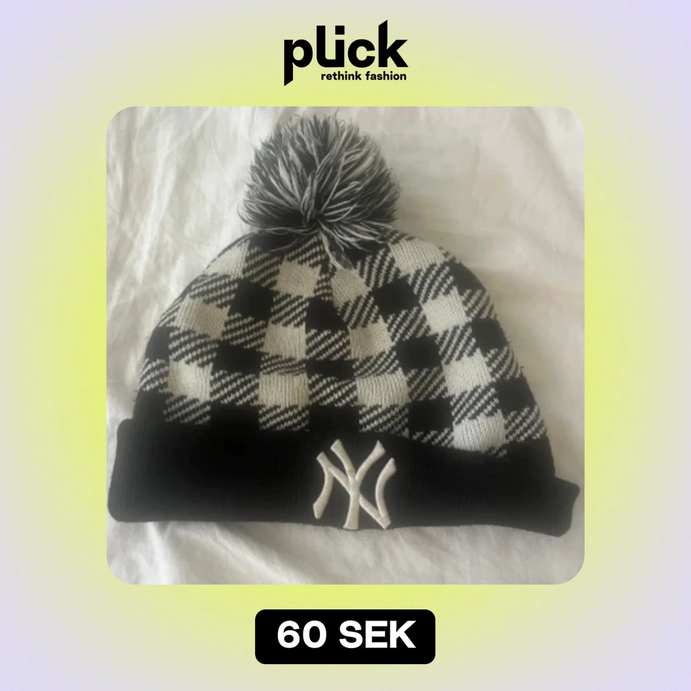 Svart vit vinter/ höst mössa från NY med mönster och pälsboll. Kommer inte till användning och säljs därför 🔥