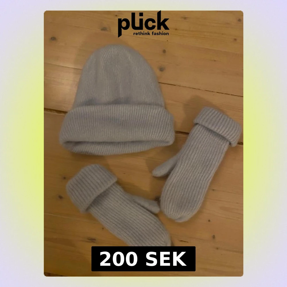 Set med mössa och vantar i ljusblått, knappt använda