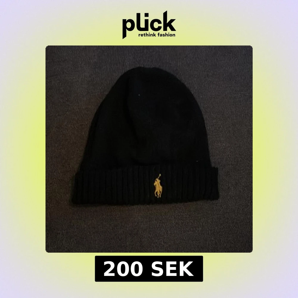 Snygg svart mössa från Ralph Lauren med en gul broderad logga framtill. Mössan har en ribbad kant som ger en skön passform. Perfekt för kyliga dagar.