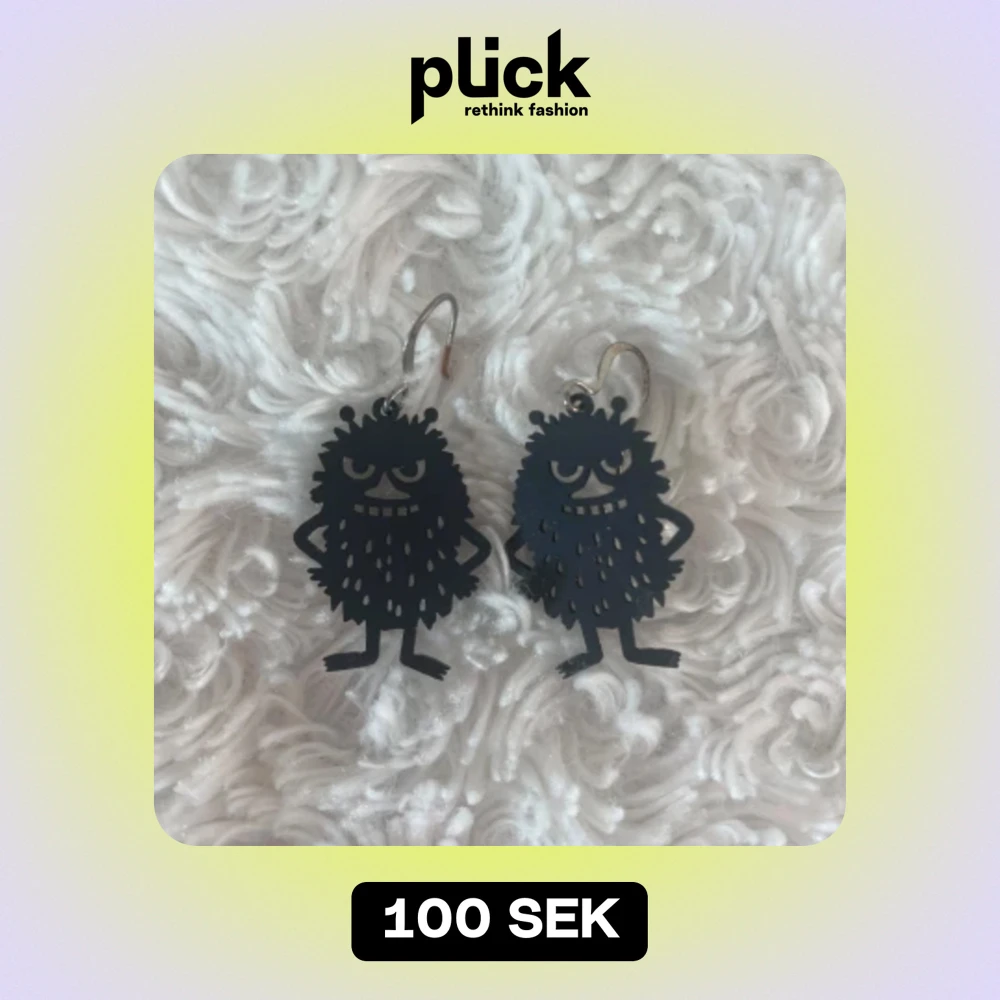 Muminörhängen. Svarta i gummiliknande material med hängen i metall. Använda någon enstaka gång.