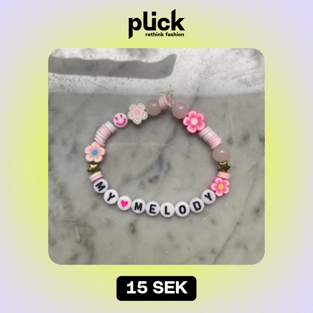 Ett gulligt my melody handgjort armband☺️ ganska stort så jag skickar med en tråd bit så du kan göra om den 🎀🌸gör också custom orders😁🫶🎀