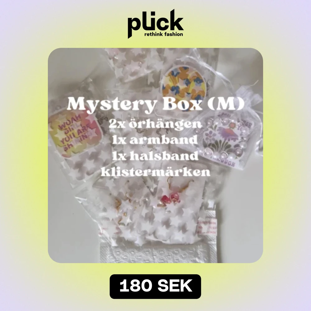 Vad som ingår: 2x örhängen, 1x armband, 1x halsband. Alla saker är slumpmässigt valda av vårat utbud på Plick! 🤍 (Ifall du har preferenser kring färgen på metallen [guld/silver] får du gärna dm:a mig 🫶)