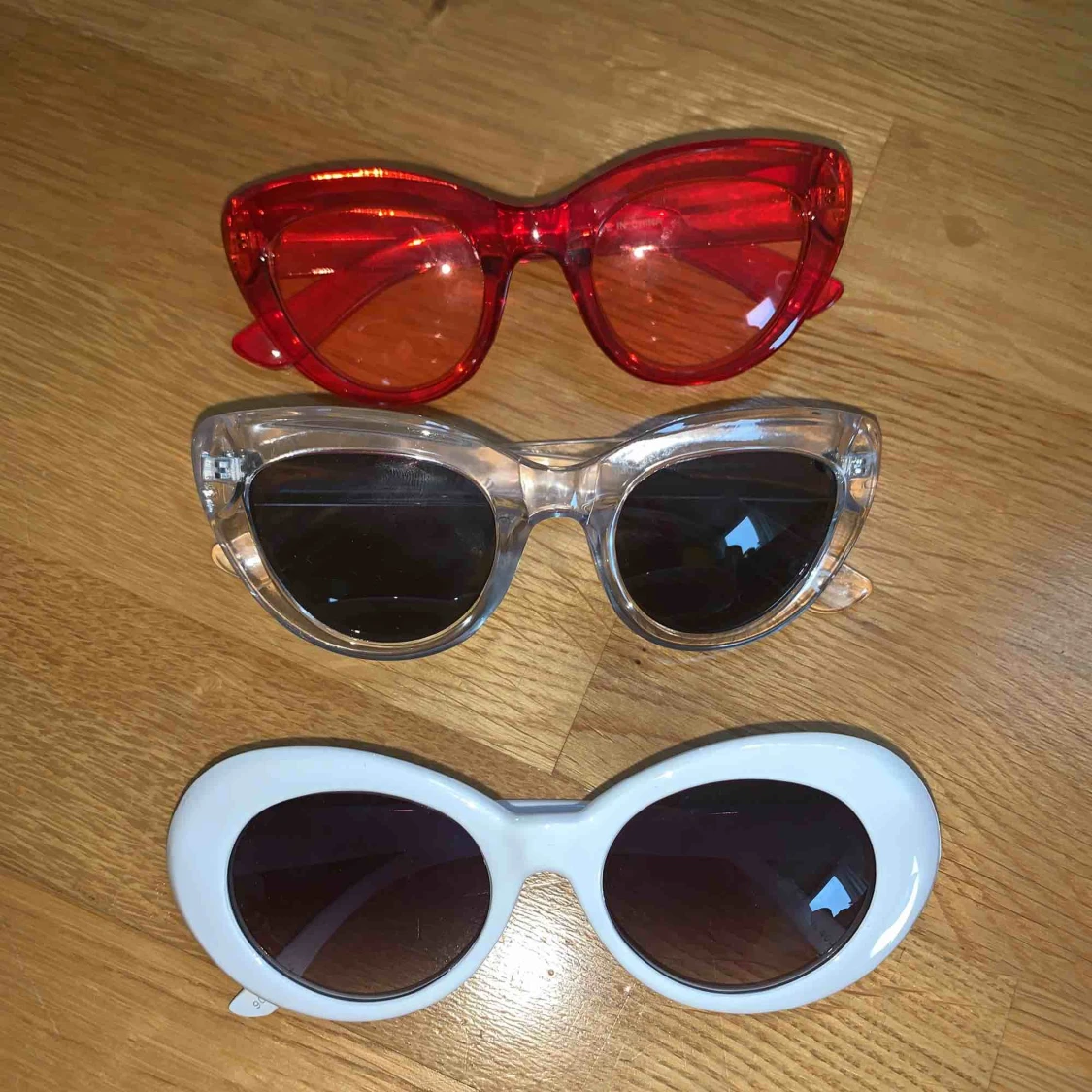Tre par glasögon, alla tre är använda fåtal gånger! Två översta är från NA-KD och de understa är köpta på Beyond Retro💜 100kr för alla tre par!