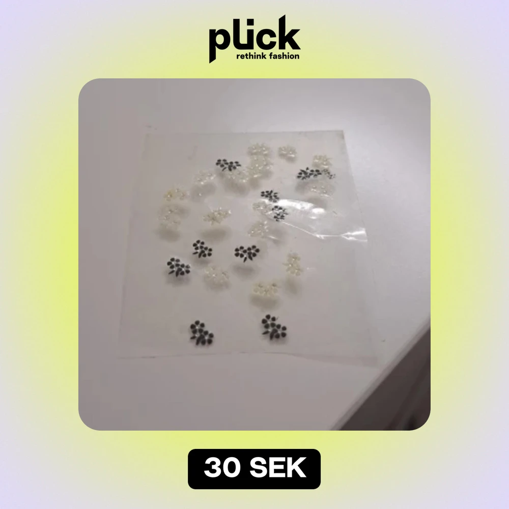 Säljer ett set med söta blommiga nagelklistermärken i svart och vitt. Perfekta för att ge en extra touch till din outfit. De är små och diskreta, men ändå stiliga och eleganta. Passar både till vardags och fest!