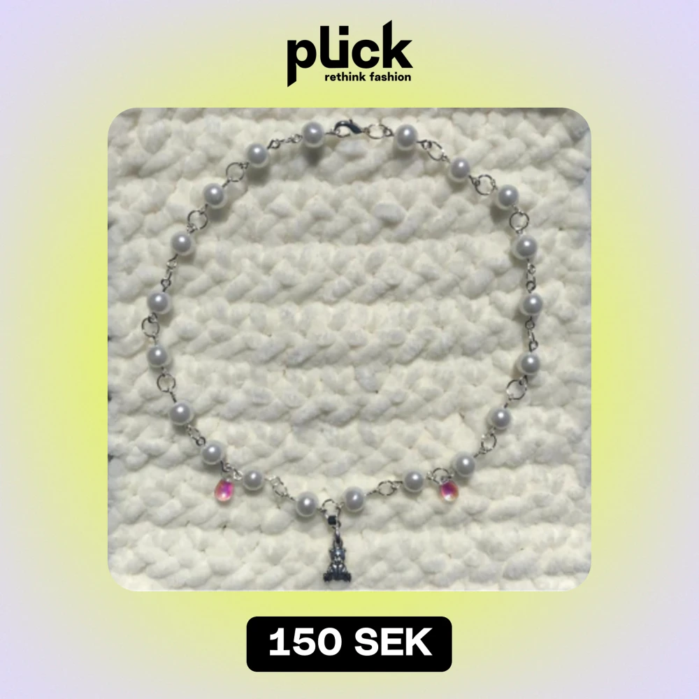 Vackert nallebjörn halsband med vita glaspärlor och skimrande glasdroppar. Kontakta gärna vid frågor och innan köp☺️