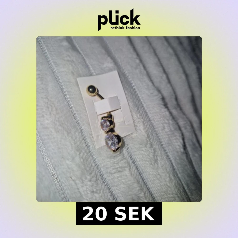 Snygg oanvänd navelpiercing i guldton med två stora, glittriga stenar som fångar ljuset. Stenarna är klara och sitter i en rund infattning, vilket ger ett lyxigt och trendigt intryck. Perfekt för dig som vill ha något som verkligen syns och glittrar.