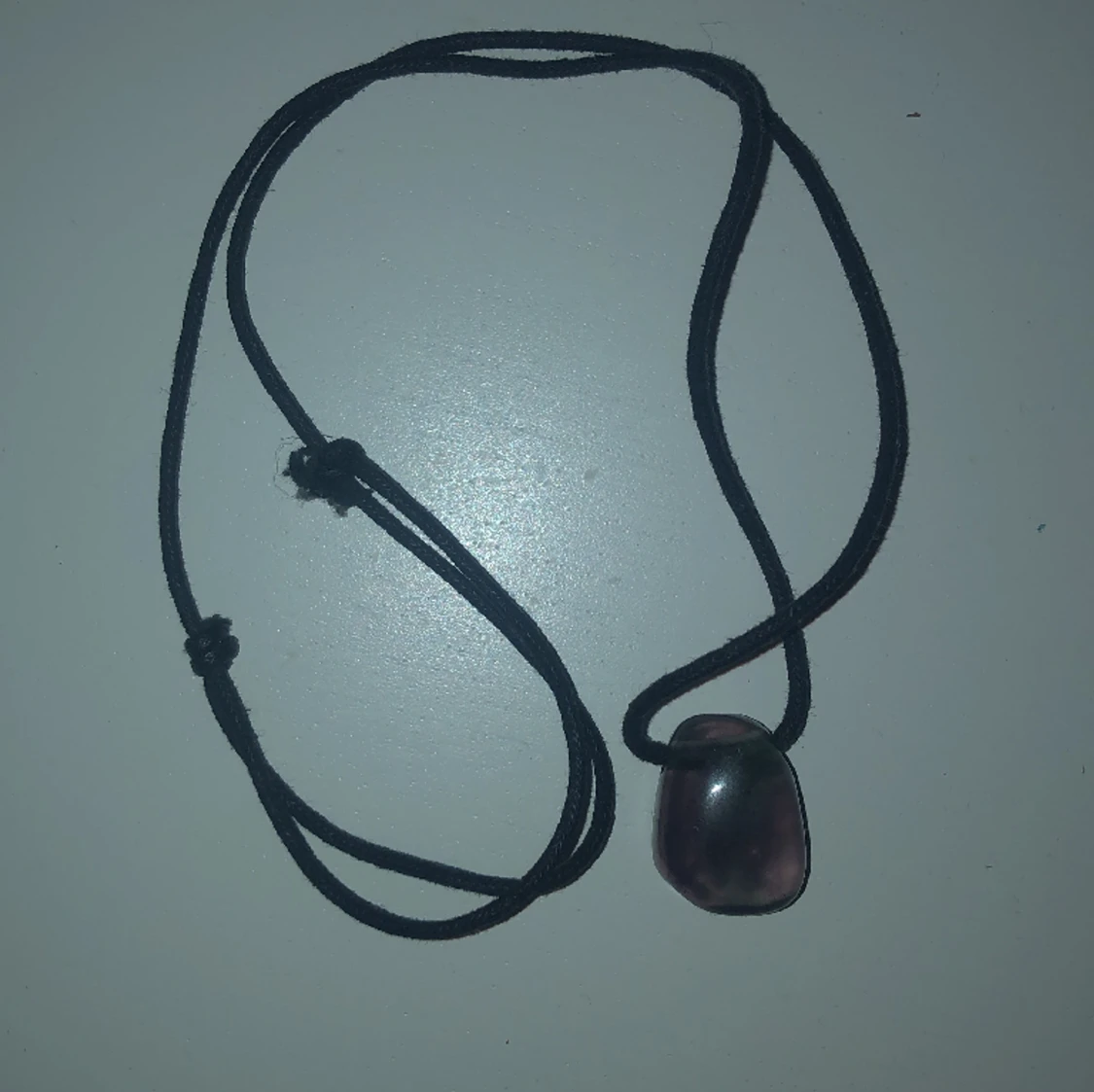 En lila och blå sugulit sten som symboliserar och stöten kärleken och helhet. Justerbart i nacken