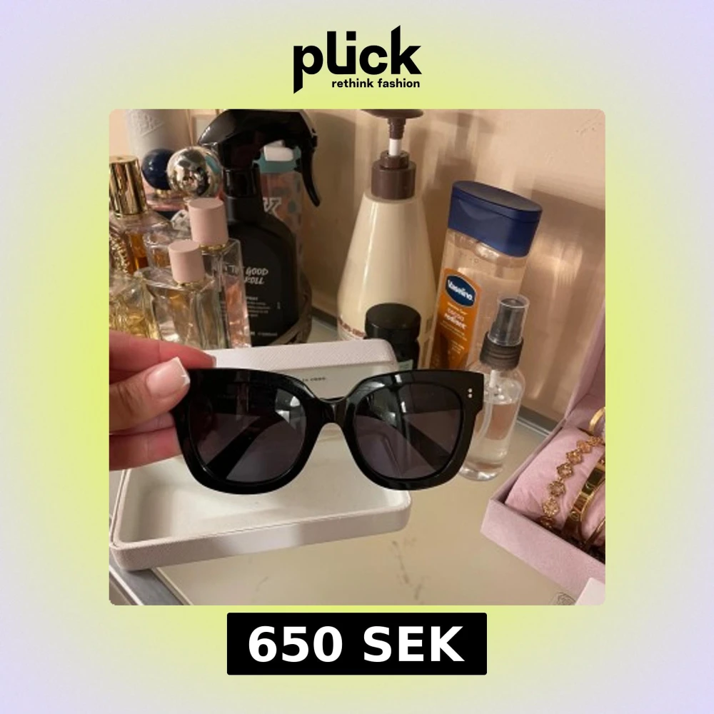 Snygga svarta solglasögon från Chimi i strl 08 med breda bågar och mörka linser. Kommer i fodral och vit tygpåse.