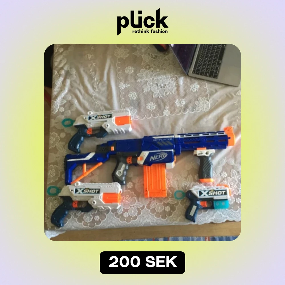 Några Nerf som jag har haft länge hemma som inte kom till nån användning. 4st. Om du vill ha skott också är det +200kr. 45st skott till Nerf
