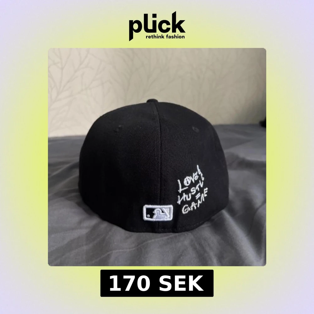 Snygg svart New Era 59FIFTY keps med broderad Yankees-logga i vitt och ett litet hjärta på framsidan. Texten 'Love Hustle Game' är broderad på sidan. Klassisk rak skärm och broderade detaljer. Perfekt för dig som gillar streetstyle och sport.