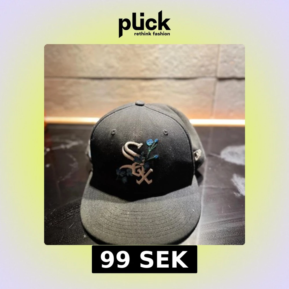 Snygg svart 59FIFTY keps från New Era med White Sox-logga framtill och broderade blå blommor. På sidan finns en broderad World Series-patch i blått och vitt. Klassisk rak skärm och strukturerad form, perfekt för dig som gillar sportig streetstyle. Använd lite grann men inte nå sunkig